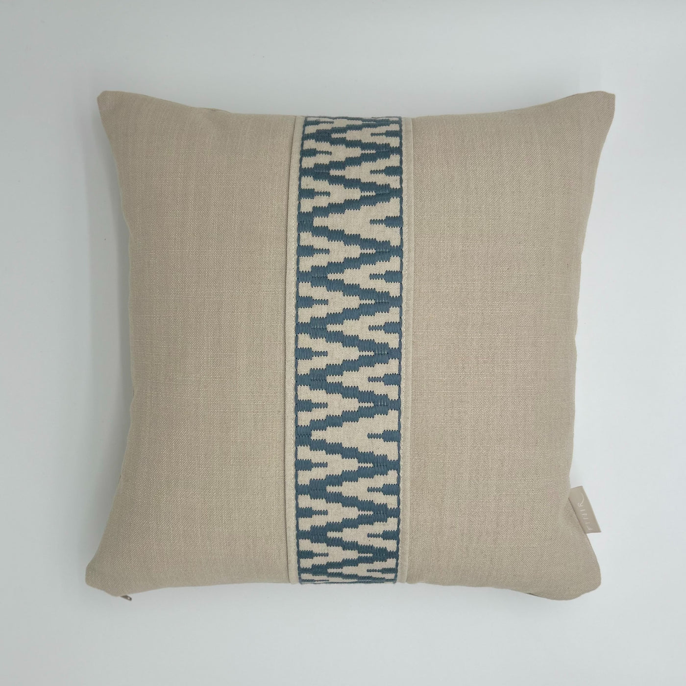 Our 17" Eman cushion is crafted in our signature fabric, showcasing any of our Finir trims down the front centre....